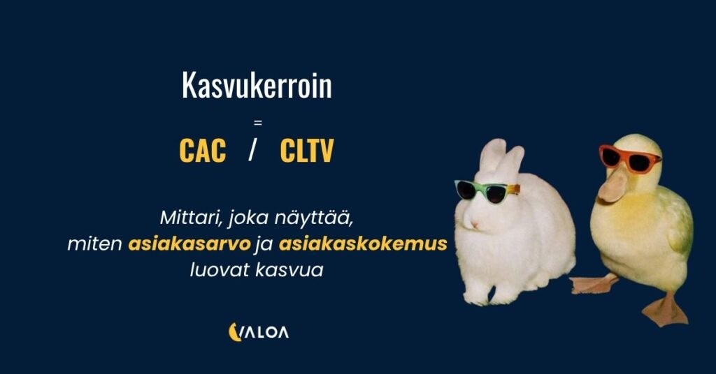 Kasvutahtoisessa yrityksessä CACin kanssa mitataan CLTV:tä, jotka yhdessä muodostavat kasvukertoimen.